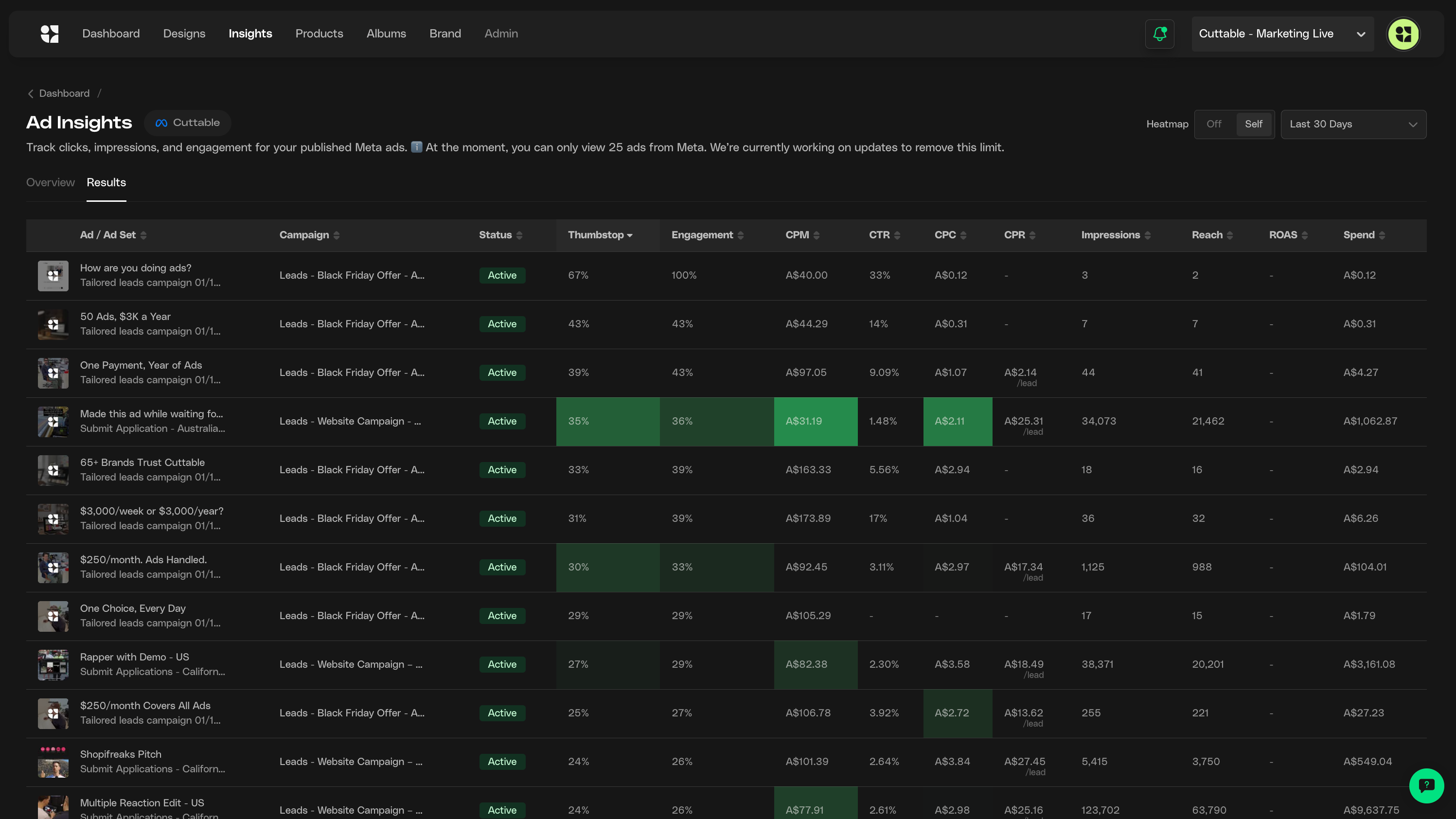 "With our recent campaign using Cuttable, it’s the best campaign we’ve ever done 10 times over. In total we put 45 different creatives in and averaged an 8.5 ROAS across the whole campaign. 3 times bigger than our Black Friday sale."